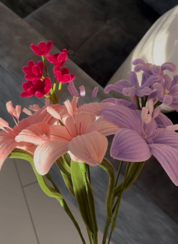 handgemachter Lilienstrauß - handgemacht aus Pfeifenreinigern (ohne Schleife)